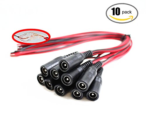 OdiySurveil(TM) 10 inch(30cm) 2.1 x 5.5mm DC Power Pigtail Female Cable (Pack of 10)