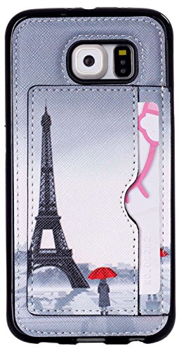 S6 Case AIYZE Pink TPU Back Protective Cell Phone Cases For Samsung Galaxy S6 SM-G920F + Stand + Credit Card Slots Holder Premium PU Leather Multi-functional (Glasses Dog)