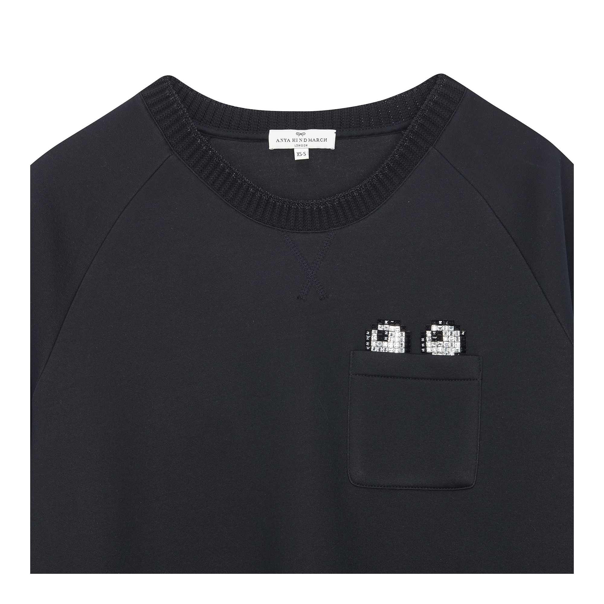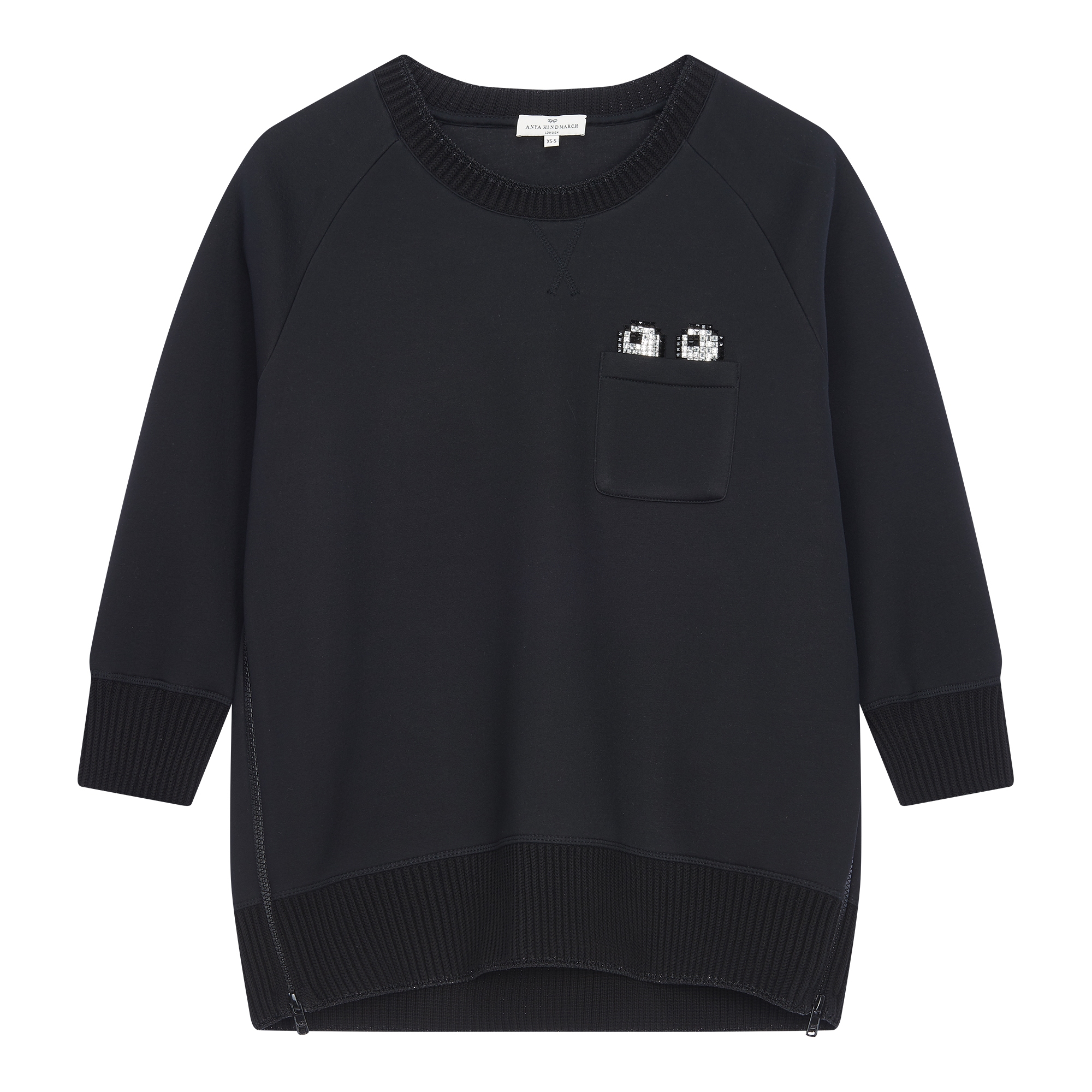 컬렉션 : 2018 Spring/Summer 디자인 포인트 :- 패치 포켓 부분에 크리스탈 아이즈 장식 디테일이 돋보이는 블랙 컬러 스웻 셔츠- 아이즈 모티프로 위트있는 포인트가 느껴지는 디자인- 사이드 지퍼 슬라이드 디테일로 다양한 연출이 가능한 아이템- 넥라인과 밑단 등에 니트 립 조직 디테일로 포인트를 더한 상품 스타일링 추천 :다양한 워싱의 데님팬츠 혹은 롱 스커트 등의 아이템과 트렌디한 스타일링을 연출 할 수 있음