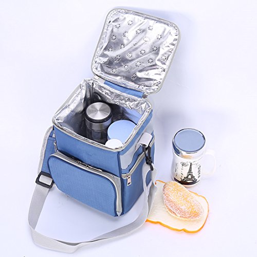 WGPFBAG 8L Large capacity Portable Insulated lunch Bag Thermal Food Picnic Bag for Women kids Men Cooler bag Lunch Box (LIGHT BLUE)