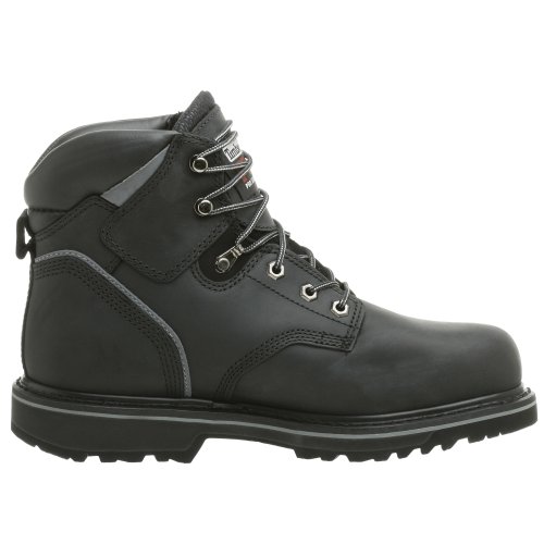 Amazon.com Product Description The Pit Boss is everything a work boot should be: Safe, tough and really comfortable. First off, the steel toe construction meets ANSI safety standards and offers a roomier toe box than other boots. This means no foot pain even after long hours of hard work. You've also go an unsurpassed traction-grip for working on wet or slippery surfaces and electronic hazard protection to keep you safe from open circuits. On the comfort front, a removable sock liner proves blisters don't have to go hand-in-hand with hard work. And finally, these boots aren't anything if they aren't tough. Go ahead, just try and wear them out.