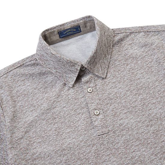 - 화이트 컬러감이 섞인 멜란지 패턴으로 감각적인 남성 카라 티셔츠.