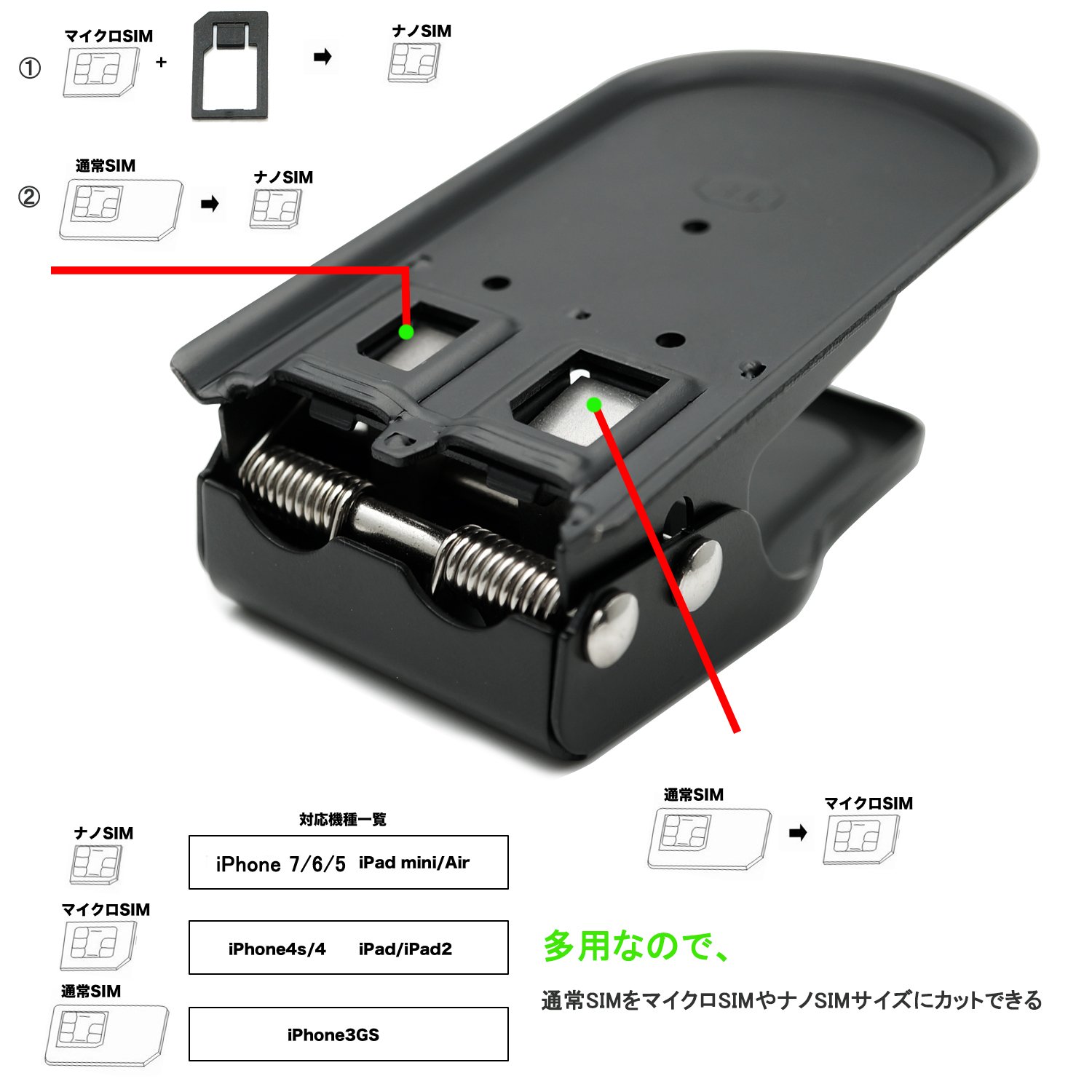 Both compatible SIM cutters that can cut ordinary SIM into micro SIM and ordinary SIM to nano SIM Of course, cut SIM can also be used on the original terminal!