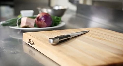 Solid, reversible maple wood cutting board; measures 24 by 18 by 1-1/2 inches (LxWxH)
