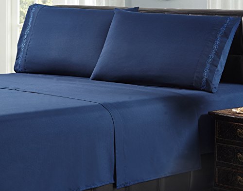 Leaf Microfiber Queen Sheet Set,Dk-Blue