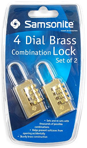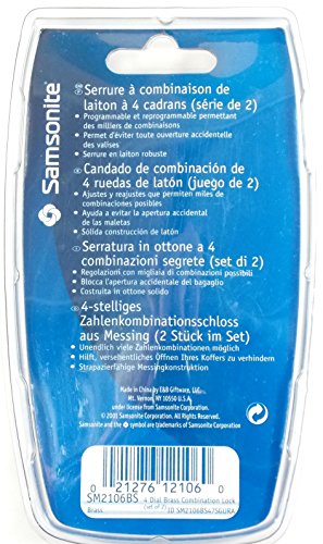 -. Title : Samsonite 4 Dial Brass Travel Combination Lock - Twin Pack - Sm2106bs