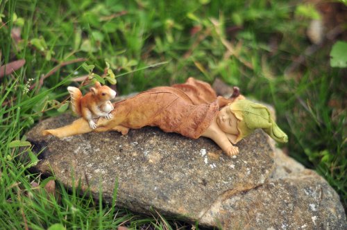 Top Collection Enchanted Story Fairy Garden Sleeping Fairy Baby with Squirrel Outdoor Statue