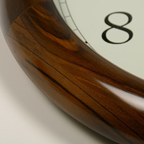 Elegant brown wall clock, 14 inch diameter round wood frame mental clock dial.