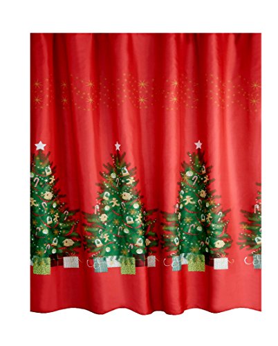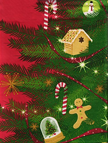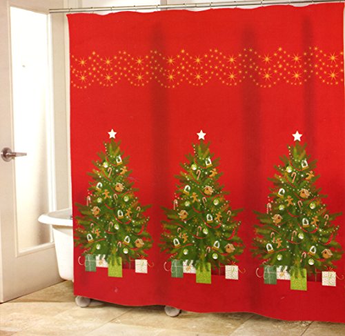 Christmas Tree Fabric Shower Curtain Decorated with Gingerbread and Candy Cane Ornaments