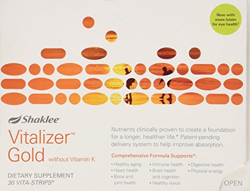 -. Binding : Health and Beauty -. Brand : Shaklee -. EAN : 0120285020286 -. Feature : Changing Brands Can Change Your Life / Vitalizer Gold without vitamin K is formulated with key nutrients to help meet the specific health needs of todays healthy / Size: 30 Days / Body Needs Bio-optimized nutrients for optimum absorption High potency to fuel your bodys most vital functions 100% or more of the Daily Value of all vitamins -. IsAdultProduct : 0 -. Label : Shaklee -. Manufacturer : Shaklee -. MPN : 20285 -. PartNumber : 20285 -. ProductGroup : Health and Beauty -. ProductTypeName : HEALTH_PERSONAL_CARE -. Publisher : Shaklee -. Studio : Shaklee -. Title : Shaklee® Vitalizer® Gold without Vitamin K, 30 Vita-Strips -. UPC : 120285020286