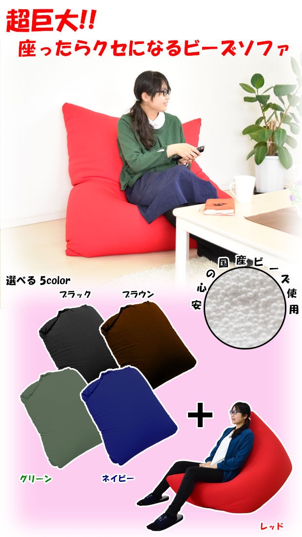 国産ビーズを使用した "メガサイズ”のビーズソファ XL