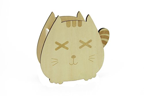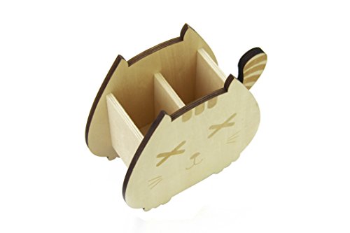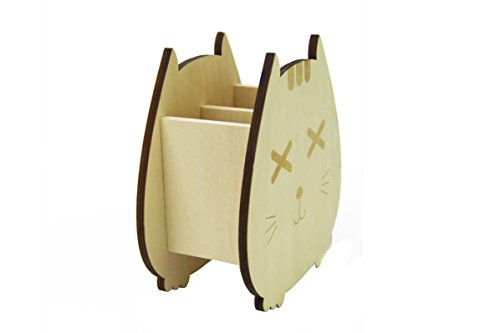 SweetDays Cute Kitty Wooden Desk Pen Pencil Holder Organizer Caddy (X-X Eyes)