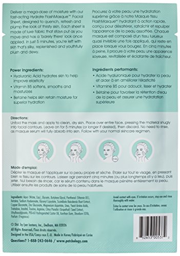 -. Binding : Health and Beauty -. Brand : Patchology -. EAN : 0852653005389 -. Feature : HydraSurge5 Moisture System is an exclusive complex of 5 hydrating ingredients and our advanced masque material to accelerate delivery in 5 minutes. / Each sheet is made of luxe fabric that stays put as you move and has a 'barely there' look once applied. / Delivers a super-charged boost of hydration and essential ingredients in a super-fast timeframe, so your skin gets the vital moisture it craves. / An essential beauty enhancer for travel, jet lag skin recovery, morning after pick-me-up or pre-party prep. / May be used once a week, or as often as needed to boost the hydration effects of your regular skincare regimen. -. Label : Patchology -. Manufacturer : Patchology -. MPN : OGY-FMH8 -. NumberOfItems : 1 -. PackageQuantity : 1 -. PartNumber : OGY-FMH8 -. ProductGroup : Prestige Beauty -. ProductTypeName : BEAUTY -. PublicationDate : 2015-04-13 -. Publisher : Patchology -. ReleaseDate : 2015-03-31 -. Studio : Patchology -. Title : Patchology Hydrate Flashmasque Facial Sheets, 8 Count -. UPC : 852653005389