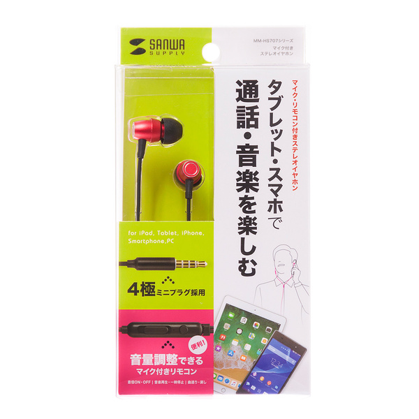 ●対応機種:φ3.5mm4極ミニプラグに対応したタブレット・スマートフォン・パソコン*4極ミニ仕様の全ての機器の動作を保証するものではありません。*着信応答や通話終了は、機器によってはボタン長押しの場合もあります。*Skypeなどのインターネット通話では、着信応答/通話終了ボタンは動作しません。