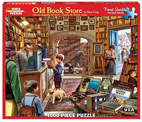 -. Binding : Toy -. Brand : White Mountain Puzzles -. EAN : 0724819256952 -. Feature : The Old Book Store jigsaw puzzle features a nostalgic scene from an English Village by artist Steve Crisp. / Artist Steve Crisp has become a well-established, internationally known, award winning illustrator. / Every White Mountain Puzzle is proudly manufactured in America with a 100% customer satisfaction guarantee. / All our puzzles contain unique interlocking pieces that are made of sturdy blue chipboard on recycled paper. / 1000 piece puzzles measure 24"x30" - larger pieces for easy handling -. IsAdultProduct : 0 -. ItemPartNumber : 1082 -. Label : White Mountain Puzzles, Inc. -. Manufacturer : White Mountain Puzzles, Inc. -. Model : 1082 -. MPN : 1082 -. NumberOfItems : 1 -. PackageQuantity : 1 -. PartNumber : 1082 -. ProductGroup : Toy -. ProductTypeName : TOYS_AND_GAMES -. Publisher : White Mountain Puzzles, Inc. -. Studio : White Mountain Puzzles, Inc. -. Title : White Mountain Puzzles Old Book Store - 1000 Piece Jigsaw Puzzle -. UPC : 724819256952 -. Warranty : No Warranty