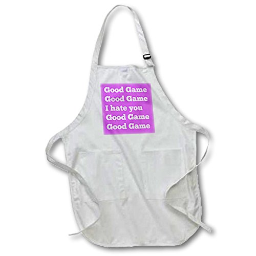 3dRose apr_200779_4 Good Game I Hate You Pink White Full Length Apron with Pockets, 22 by 30-Inch, Black