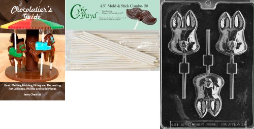 Cybrtrayd 45St50Bk-E409 'Cute Bunny Lolly' Easter Chocolate Candy Mold with 50 4.5-Inch Lollipop Sticks and Chocolatier's Guide