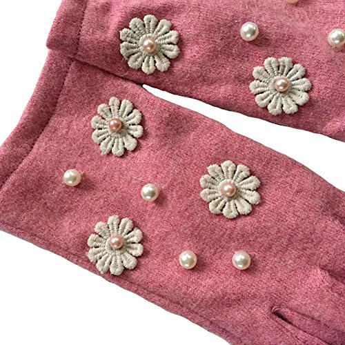 Product Description Fashion Elegant Fleece Warm Gloves Screen Touch Winter Gloves With Pearls and Flowers Christmas Gift Our winter gloves are fashion forward designed, which are windproof and washable. They will show your taste of fashion and keep your hands warm indoors or outdoors. Hand wash would be better, hang dry, and do not bleach. 0
