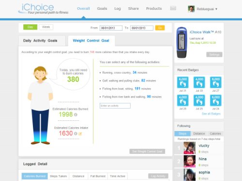 -. Feature : iChocie USB Pedometer with Steps,Distance,Fat,Calories and Web based App by iChoice