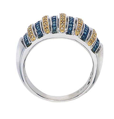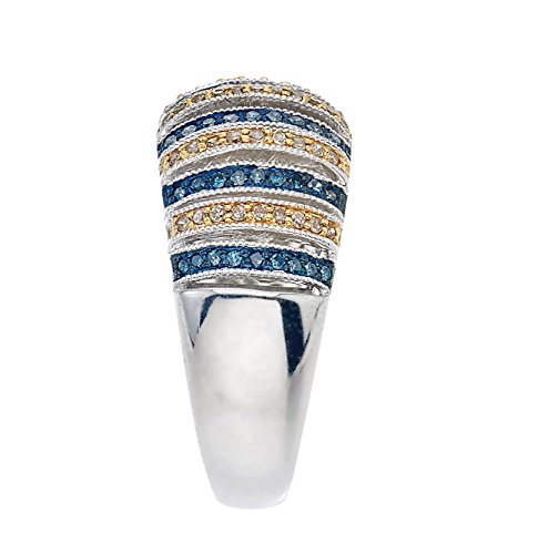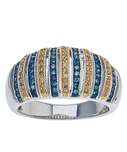 -. Feature : Champagne and Blue Diamond Band in Sterling Silver / 0.38 carats Natural White Diamonds in Champagne I-2 quality / 10mm shank Width, Comfort Fit / Comfort-Fit Band / sterling-silver