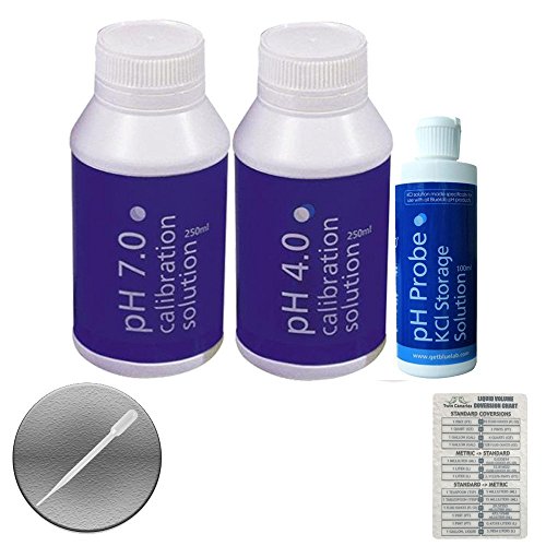3 Pack Bluelab Bundle: pH 4.0 & 7.0 Calibration Solution 250ml & pH Probe KCI Storage Solution 100 ml + Twin Canaries Chart & Pipette