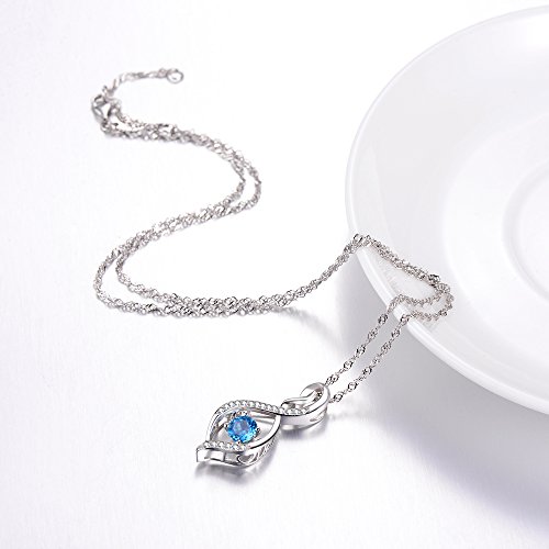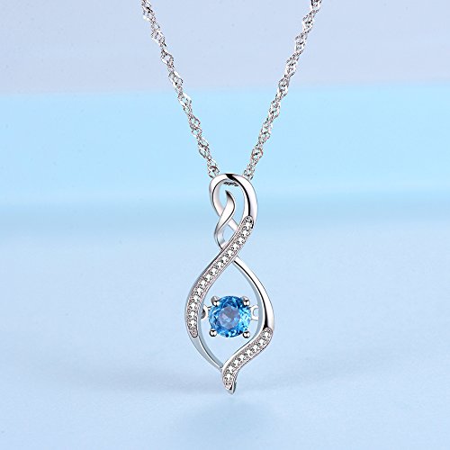 superior quality, 18K white gold plated over sterling silver, this delicate December Birthstone Natural Swiss Blue Topaz Infinity Love Symbol Pendant necklace with 20" Singpore chain will never let you down.