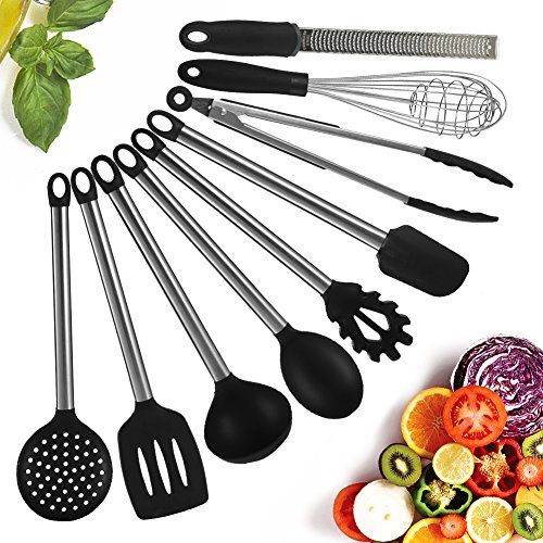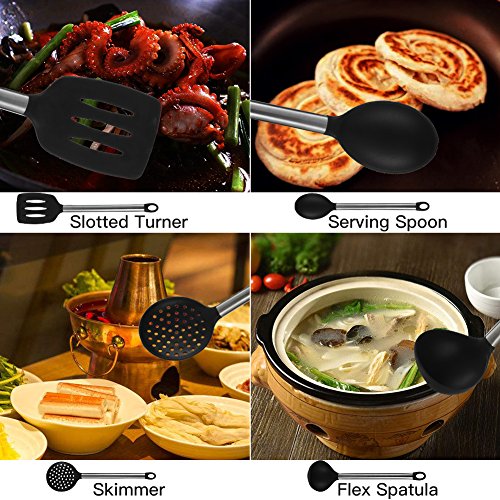 Features: Unique?design,?awesome?gift?and?personal?use. Non-Stick:?Silicone?cooking?tools?protect?your?cookware?from?scratch. Stain?and?Odor?Resistant:?Easy?cleaning?in?or?outside?of?the?dishwasher. Heat?Resistant:?Up?to?480?degree?Fahrenheit,?do?not?warp?or?melt?in?any?way. Great?set?for?a?starting?kitchen,?complete?cooking?utensils?set?covers?all?kitchen?needs. Specifications: Material:?FDA?Approved?Silicone Color:?Black Temperature?resistant:?480℉ahrenheit Dimensions:? Serving?tong:?13.8?*?1.5?inch Spoon:?13.8?*?2.8?inch Spatula?tool:?13.0?*?2.4?inch Pasta?server:?13.6?*?2.5?inch Soup?ladle:?12.6?*?3.5?inch Slotted?turner:?14.4?*?3.2?inch Skimmer:?14.2?*?3.9?inch Whisk:?12.4?*?2.8?inch Planer:?12.8*1.4?inch Package?include: 1?*?Whisk 1?*?Spoon 1?*?Slotted?turner 1?*?Soup?ladle 1?*?Skimmer 1?*?Pasta?server 1?*?Serving?tong 1?*?Spatula 1?*?Planer Please?let?us?know?if?you?have?any?problem,we?will?give?you?the?best?service?and?solve?the?problem?ASAP.Thank?you?so?much. 0 |