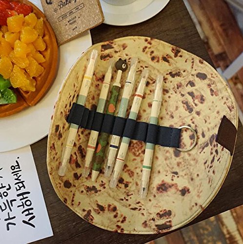 Roll Up Pencil Case - Artificial Pancake Makeup Brush Holder - Resistant PU Leather Pen Wrap with Velcro Strap from Chris.W