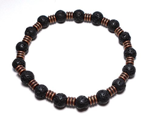-. Title : Black Lava Vocano Rock Mens Beaded Bracelet