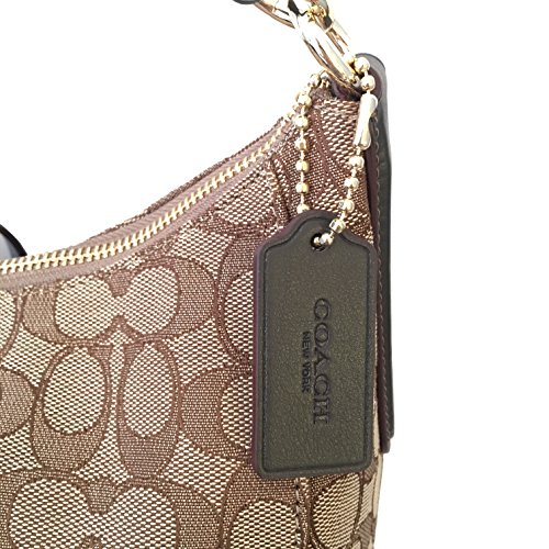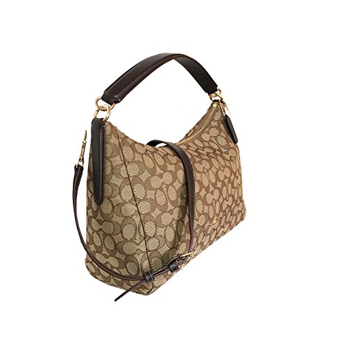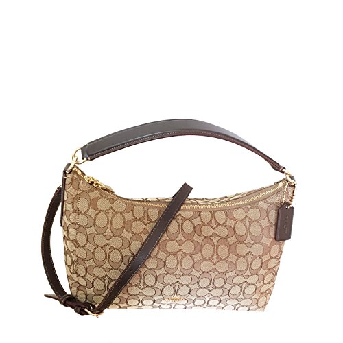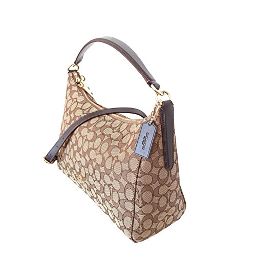 -. Feature : Signature jacquard, Inside zip, cell phone and multifunction pockets / Zip-top closure, fabric lining / Handles with 5" drop, Longer strap with 20 1/2" drop for shoulder or crossbody wear / 14 1/4" (L) x 9 1/2" (H) x 5" (W)