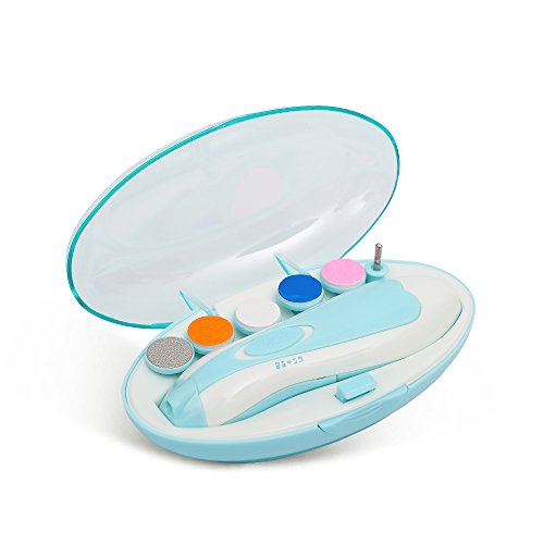 6 Grinding Heads: For Baby Use Blue one: for 0-3 months old baby. Orange one: for 4-11 months old baby. Pink one: for over 12 months old baby. For Adult Use Metal grinding head:grinding the dead skin and calluses. White head:polishing nails and removing fingernails base dead skin. Cylindrical grinding head:grinding the nail edges.