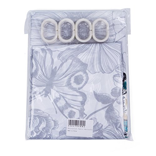 IMIEE Waterproof Fabric Polyester Shower Curtains with Butterfly Design,72 x 72 inch with 12 Hooks