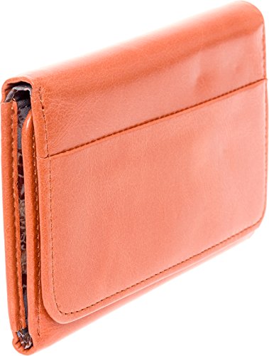 This Vintage Jill Tri Fold Wallet by Hobo is perfect for those women who love to stay organized but hate big bulky wallets. Made from top-grain genuine leather, this wallet has been tumbled for a unique, broken-in vintage look. Open the snap closure to reveal 7 credit card slots, 3 slip pockets, 1 bill slot, and an ID window w/thumb glide. It's small design is perfect to drop into your crossbody bag but also opens flat so you can store all your most needed cards and cash with ease. Measures 5.25" x 3.5" x 0.75".Feature