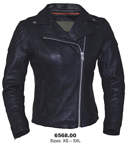 Binding : Apparel Product Description This womens jacket has all the features you could ever ask for. Made out of premium 1.1/1.2 mm leather, silver hardware, 2 inside and outside pockets and a full zipper out liner! If you want that classic biker chick look then this is the jacket for you! 0