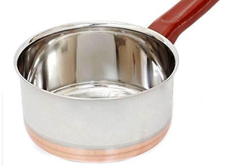 Copper bottom. Premium quality mirror finish stainless steel deep vessel pan /milk pan / sauce pan / cooking pot with plastic handle for kitchen. Export Quality Stainless Steel making the utensil highly durable, long lasting & rust free. Giving it a long live, keeping it Beautiful