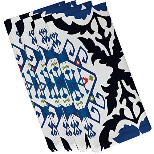 E by design Bombay Medallion, Geometric Print Napkin, 19 x 19", Navy Blue