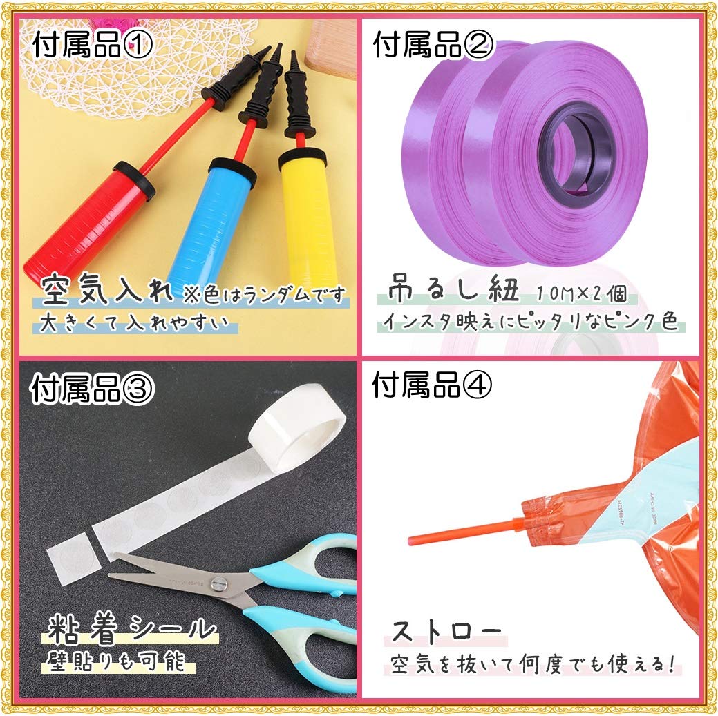 【豪華装飾】 パーティーをより華やかにできる豪華な風船セット!ポンプ付きだから準備もらくらく♪