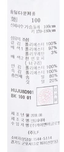남성 블랙 탈착후드 캐주얼 야상 다운점퍼 HUJU8D901BK