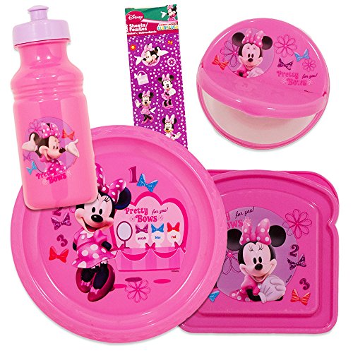 Disney Minnie Mouse Toddler Dinnerware Set - Plate, Bowl, Cup, Stickers (Minnie Mouse)