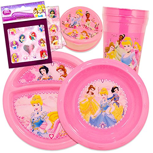 Disney Princess Toddler Dinnerware Set - Plate, Bowl, Cup, Snack Container, Stickers (Disney Princess)