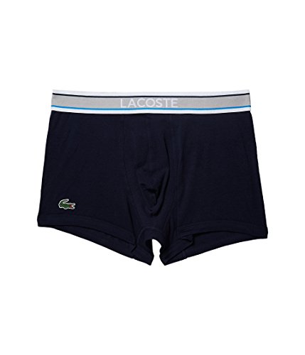 Lacoste Men's 3 Pack Signature Waistband Cotton Stretch Trunk, Nvy/Gry/Brillbl, X-LARGE