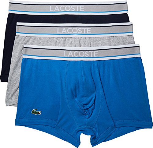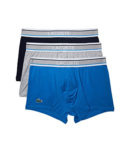 Lacoste Men's 3 Pack Signature Waistband Cotton Stretch Trunk, Nvy/Gry/Brillbl, MEDIUM