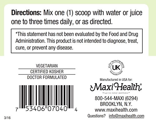 Our uncompromising commitment to quality begins with selecting the finest raw materials from across the globe, to high standard manufacturing practices in a GMP Certified and FDA registered Facilities, in the USA. All Maxi Health products are certified kosher, under the Orthodox Union (OU) and the Udvari Kashruth (UK). Legal Disclaimer: These statements have not been evaluated by the FDA. This Product is not intended to diagnose, treat, cure or prevent any disease.