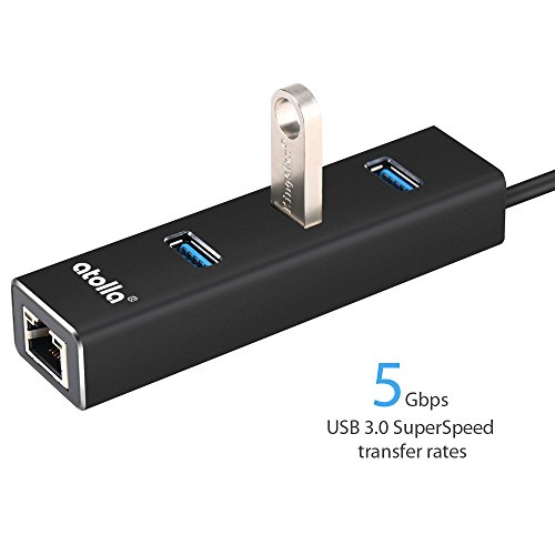 Package Contents: 1X atolla 3-Port USB 3 Hub with Gigabit Ethernet Port(Size: 4.1x1x0.7”,0.158Ib), 18 MONTHS limited warranty