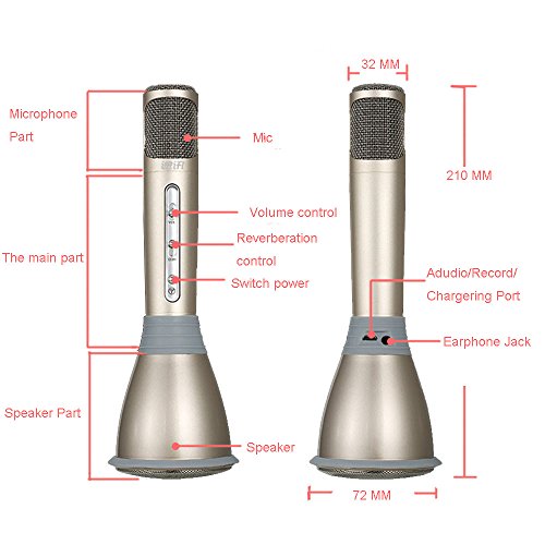 -. Feature : Echo Reverb:Powerful echo effect,adjustable echo length. / Micphone:Micphone volume can be adjusted until you are satisfied. / KTV Efect:Two channel stereo headphones, a stunning KTV live-sound ,clearly identify,music rhythm . / Convenient:This is not a general micphone,you can singing and recording at anywhere and anytime.