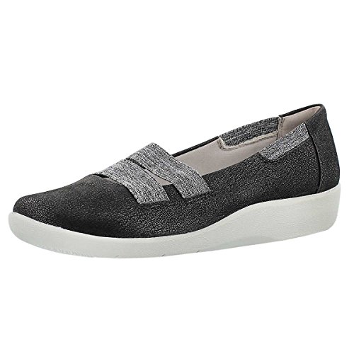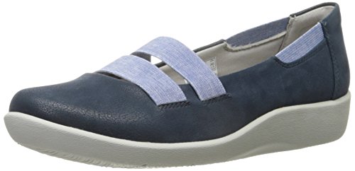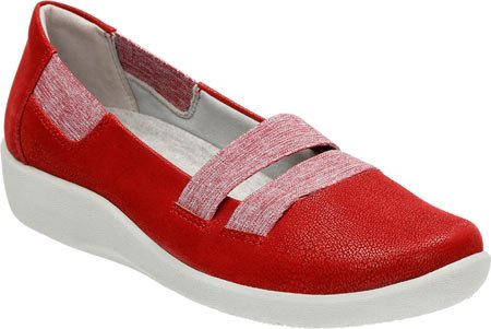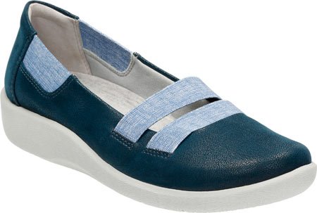 The Sillian Rest is a fun and feminine flat. Equal parts style and comfort, this women's slip-on shoe from the Clarks collection is modern, streamlined, and easy to wear. Soft fabric linings, ortholite® cushioned footbed, and super lightweight, shock-absorbing eva outsoles make it extremely comfortable for fitness walks, errands, or playing with the kids. The Sillian Rest is supremely lightweight and comfortable, making it a great travel shoe or everyday option.Feature