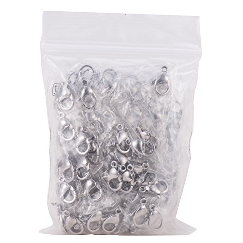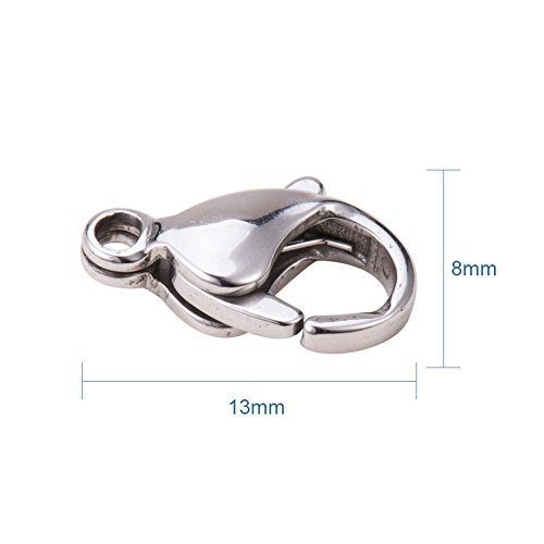 Pandahall 100PCS Grade A 304 Stainless Steel Lobster Claw Clasps, Stainless Steel Color, 13x8mm
