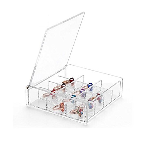 Chris.W Clear Acrylic 12 Grids Jewelry/Accessories/Beads/Earrings/Rings Tray Organizer Holder Box Case with Hinged Lid, Transparent