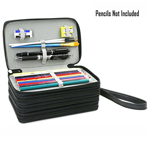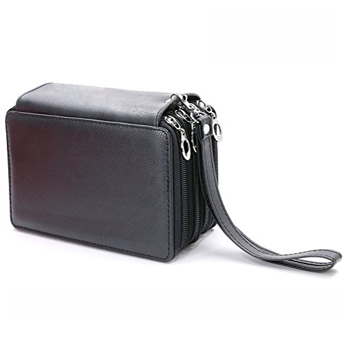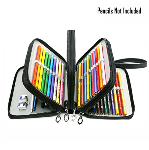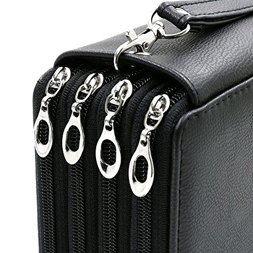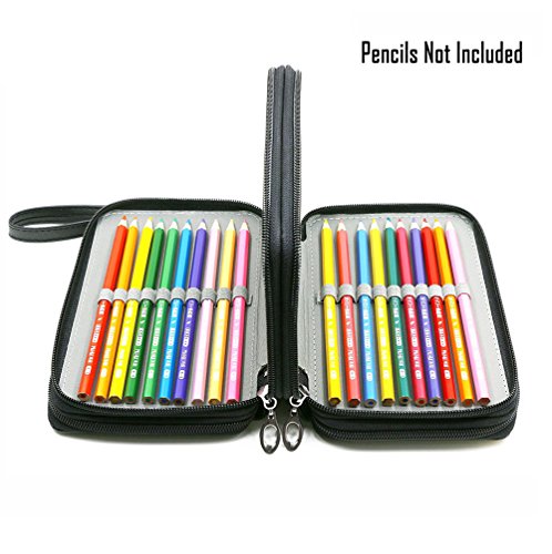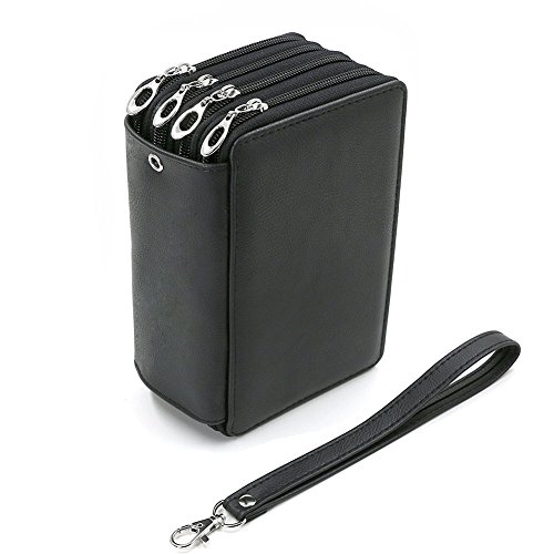 UTRO PU Leather Pencil Case Pencil Holder Large Capacity 72 Slots Multi-layer Pencil Pouch Pencil Bag Pencil Wrap Stationary Box Coloring Pencils Organizer Storage with Wrist Strap (Black)