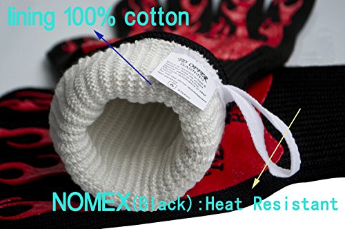 - HIGH QUALITY:Made of high quality Nomex,Silicone and 100% cotton lining,this heat resistant gloves can proof 932°F high temperature,can effectively protect your hand prevent burns